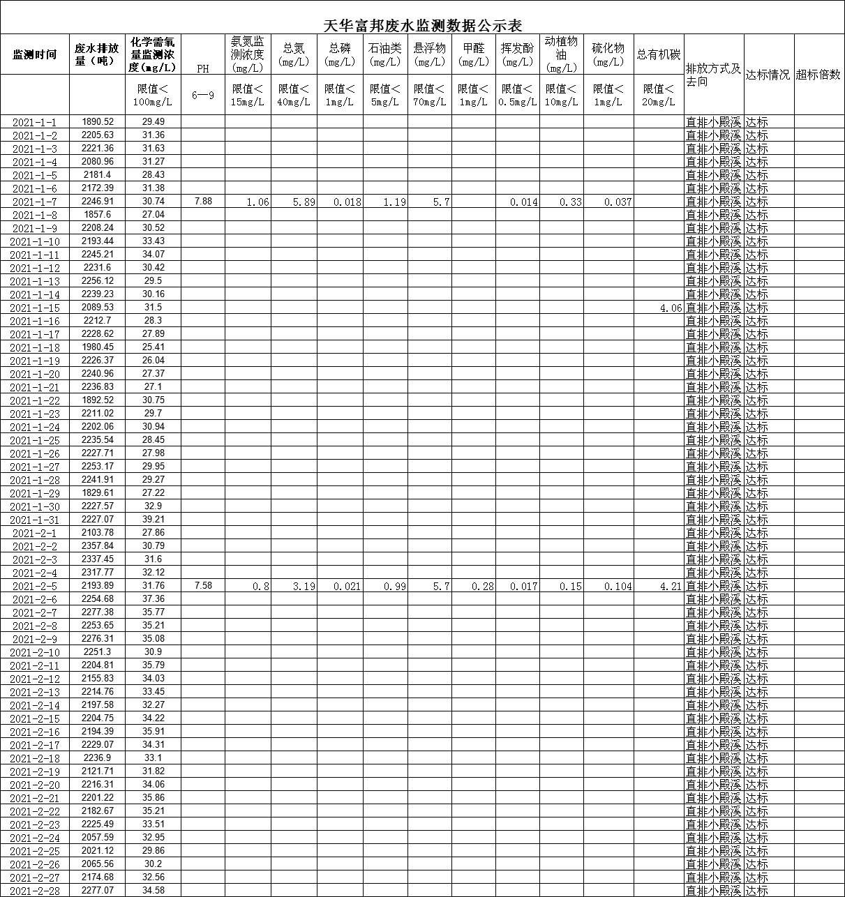 四川天華富邦化工有限責(zé)任公司1月2月廢水監(jiān)測(cè)數(shù)據(jù)公示