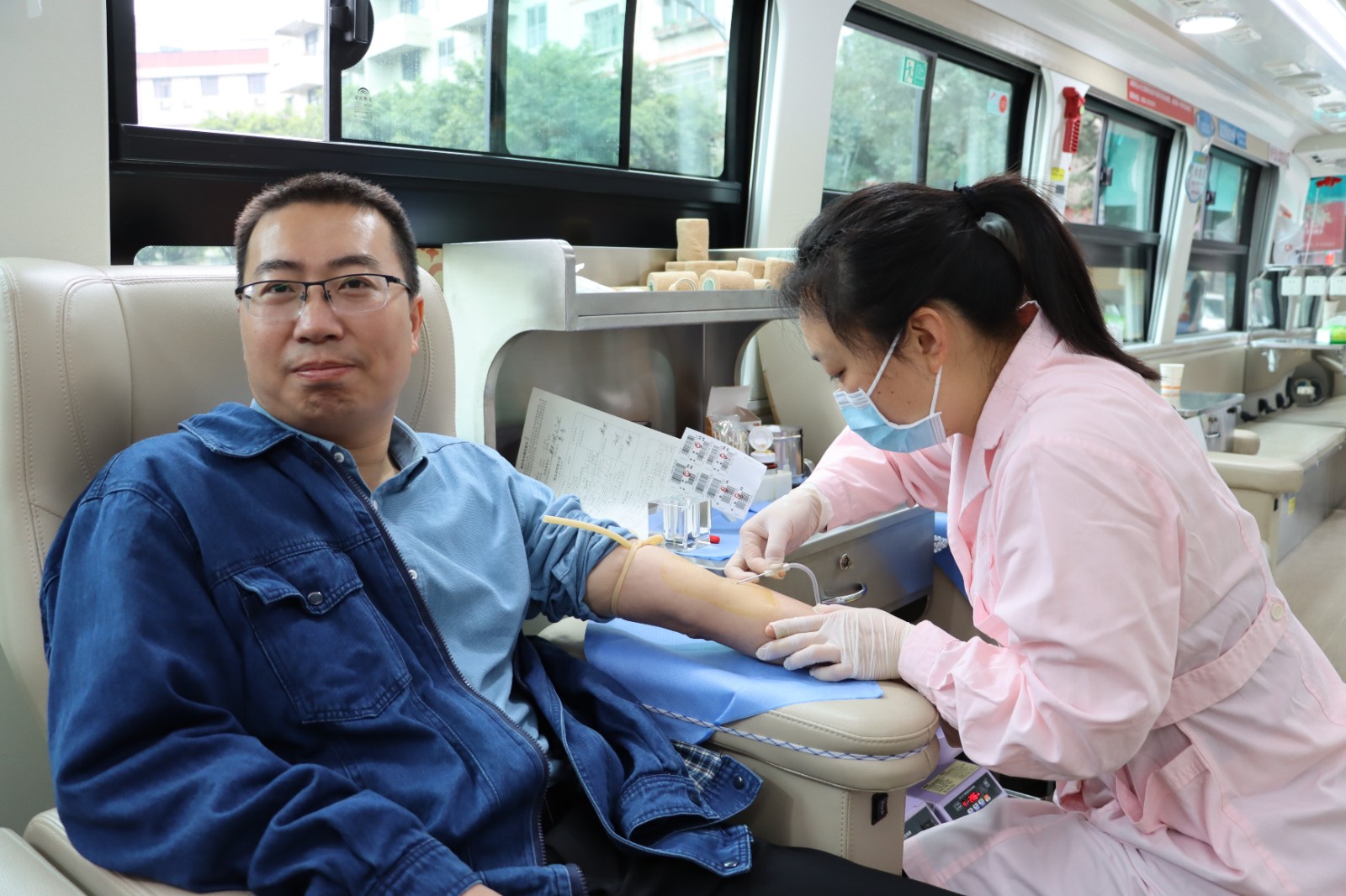 陽春三月,天氣雖然還有些寒冷,但春寒沒能阻擋天華人獻(xiàn)血的熱情。在醫(yī)務(wù)人員的引導(dǎo)下,來自集團(tuán)職能部門和生產(chǎn)車間的職工列隊(duì)接受中心血站安排的獻(xiàn)血準(zhǔn)備工作。參與獻(xiàn)血的志愿者有集團(tuán)高層領(lǐng)導(dǎo),也有中層管理人員和一線職工。大家認(rèn)真填寫獻(xiàn)血登記表、測(cè)量血壓、配合抽血化驗(yàn)等,在確定符合獻(xiàn)血條件后依次登上采血車接受采血。