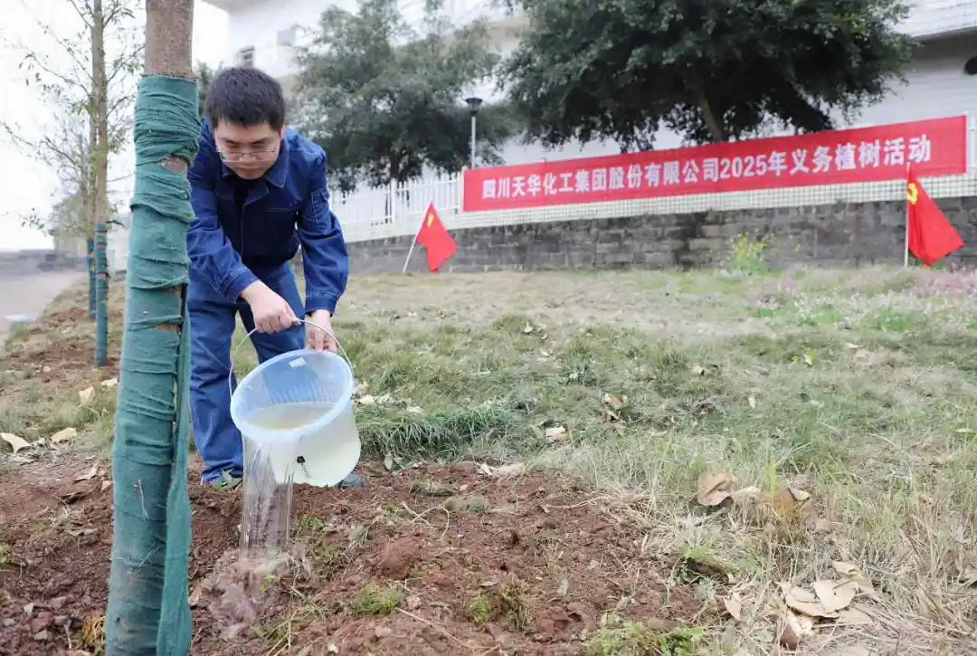 到達植樹點后,現場早已劃分好責任區域。員工們2人一組,分工協作,有的揮鍬挖坑,有的培土踩實,有的提桶澆水。后勤服務公司人員在旁指導,確保每道工序規范到位。“這是我第一次親手種樹,從挖坑到澆水,每個環節都充滿成就感。”合成車間張潔擦拭著額頭的汗水說道。經過1個小時的辛勤勞動,原本空曠的坡地已披上“綠裝”。